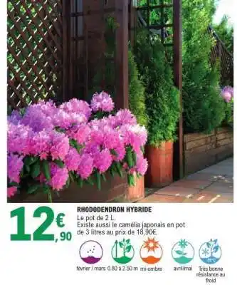 Actuellement en offre chez E.Leclerc : RHODODENDRON HYBRIDE ✅ Valable du 17-02 au 28-02.