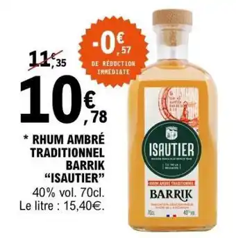 Actuellement en offre chez E.Leclerc : Rhum Ambré Traditionnel Barrik Isautier ✅ Valable du 10-02 au 22-02.