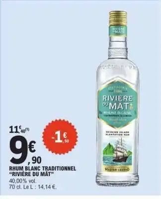Actuellement en offre chez E.Leclerc : RHUM BLANC TRADITIONNEL “RIVIÈRE DU MÂT” ✅ Valable du 17-02 au 28-02.