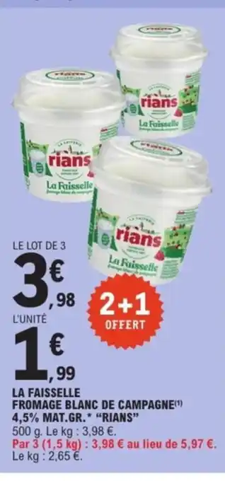Actuellement en offre chez E.Leclerc : RIANS La faisselle fromage blanc de campagne 4,5% mat.gr. ✅ Valable du 3-02 au 14-02.
