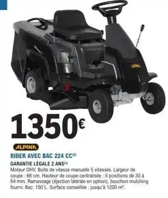 Actuellement en offre chez E.Leclerc : RIDER AVEC BAC 224 CC ✅ Valable du 17-02 au 28-02.