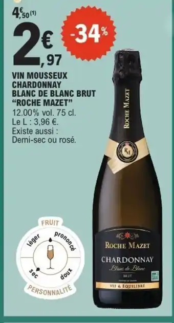 ROCHE MAZET Vin mousseux chardonnay blanc de blanc brut : offres et promos E.Leclerc à découvrir