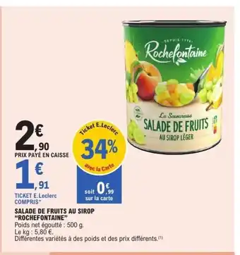 Offre ROCHEFONTAINE Salade de fruits au sirop chez E.Leclerc