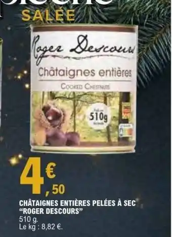 Actuellement en offre chez E.Leclerc : ROGER DESCOURS Châtaignes entières pelées à sec ✅ Valable du 23-12 au 3-01.