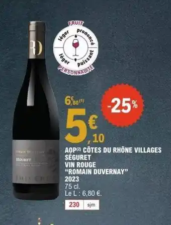 ROMAIN DUVERNAY 2023 Aop côtes du rhône villages séguret vin rouge : offres et promos E.Leclerc à découvrir