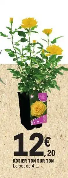 En plus de l'offre Rosier ton sur ton, E.Leclerc propose une large gamme de produits. Consultez le Catalogue E.Leclerc hebdomadaire pour découvrir les meilleures offres et promotions. En plus de Rosier ton sur ton, il y a aussi : Rosier, Rosier grimpant & Rosier la garçonne.