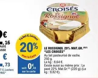 En plus de l'offre Rossignol - le 29% mat.gr, E.Leclerc propose une large gamme de produits. Consultez le Catalogue E.Leclerc hebdomadaire pour découvrir les meilleures offres et promotions. En plus de Rossignol - le 29% mat.gr, il y a aussi : LES CROISÉS Le rossignol 29% mat.gr, Fougerus 20% mat.gr.(m) & Rossignol - sèche-mains automatique en inox.