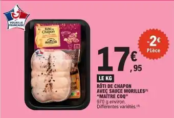 Actuellement en offre chez E.Leclerc : Rôti de chapon avec sauce morilles maître coq ✅ Valable du 23-12 au 3-01.