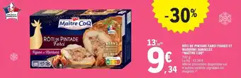 Actuellement en offre chez E.Leclerc : Rôti de pintade farci figues et marrons surgelés maître coq ✅ Valable du 23-12 au 3-01.