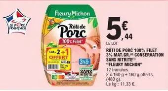 En plus de l'offre Rôti de Porc 100% Filet, E.Leclerc propose une large gamme de produits. Consultez le Catalogue E.Leclerc hebdomadaire pour découvrir les meilleures offres et promotions. En plus de Rôti de Porc 100% Filet, il y a aussi : PORC : RÔTI DE LONGE SANS OS ET SANS FILET MIGNON, Fleury michon - roti de porc 100% filet 3% mat. gr. conservation sans nitrite & Jean rozé rôti de porc longe sans os sans filet mignon.