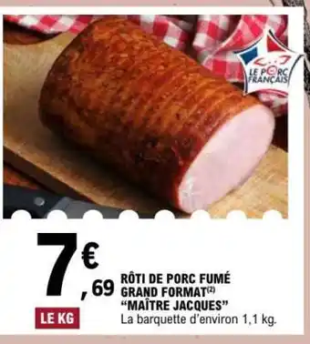 Actuellement en offre chez E.Leclerc : RÔTI DE PORC FUMÉ GRAND FORMAT MAÎTRE JACQUES ✅ Valable du 27-01 au 31-01.