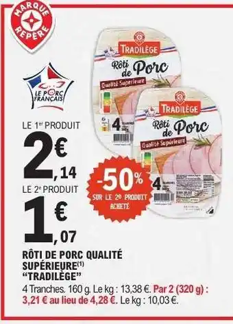 Actuellement en offre chez E.Leclerc : RÔTI DE PORC QUALITÉ SUPÉRIEURE 'TRADILÈGE' ✅ Valable du 7-04 au 18-04.
