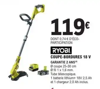 Actuellement en offre chez E.Leclerc : RYOBI COUPE-BORDURES 18 V ✅ Valable du 24-02 au 14-03.