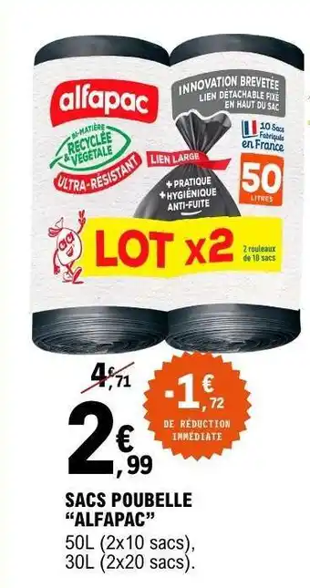 Actuellement en offre chez E.Leclerc : SACS POUBELLE ALFAPAC ✅ Valable du 10-02 au 22-02.