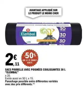 SACS POUBELLE AVEC POIGNÉES COULISSANTES 30 L “ELEMEBAL” offres et promotions en ligne chez E.Leclerc