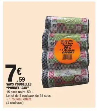 Actuellement en offre chez E.Leclerc : SACS POUBELLES POUBEL' SAK ✅ Valable du 17-02 au 28-02.