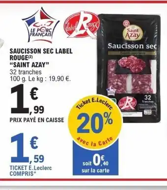 Actuellement en offre chez E.Leclerc : SAINT AZAY Saucisson sec label rouge ✅ Valable du 16-12 au 27-12.