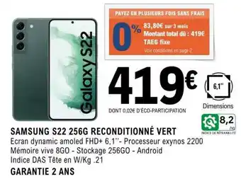 SAMSUNG S22 256G RECONDITIONNÉ VERT : offres et promos E.Leclerc à découvrir