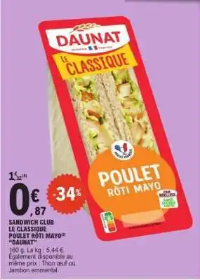 Actuellement en offre chez E.Leclerc : SANDWICH CLUB LE CLASSIQUE POULET RÔTI MAYO ✅ Valable du 17-02 au 28-02.