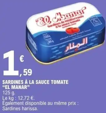 Actuellement en offre chez E.Leclerc : Sardines à la sauce tomate el manar ✅ Valable du 3-02 au 21-02.