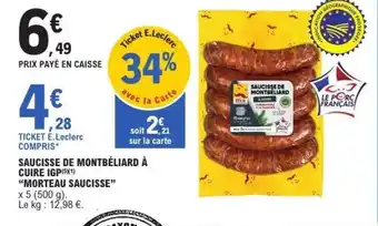 Actuellement en offre chez E.Leclerc : SAUCISSE DE MONTBÉLIARD À CUIRE IGP ✅ Valable du 27-01 au 31-01.
