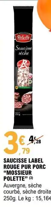 SAUCISSE LABEL ROUGE PUR PORC “MOSSIER POLETTE” : offres et promos E.Leclerc à découvrir