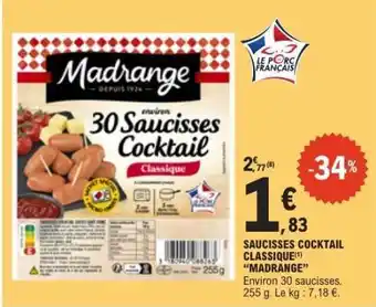 En plus de l'offre SAUCISSES COCKTAIL CLASSIQUE, E.Leclerc propose une large gamme de produits. Consultez le Catalogue E.Leclerc hebdomadaire pour découvrir les meilleures offres et promotions. En plus de SAUCISSES COCKTAIL CLASSIQUE, il y a aussi : Saucisses cocktail classique madrange, Madranger saucisses cocktail classique & Carrefour classic' saucisses cocktail.
