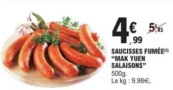 Actuellement en offre chez E.Leclerc : SAUCISSES FUMÉE 'MAK YUEN SALAISONS' ✅ Valable du 27-01 au 8-02.