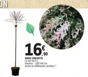 En plus de l'offre SAULE CREVETTE, E.Leclerc propose une large gamme de produits. Consultez le Catalogue E.Leclerc hebdomadaire pour découvrir les meilleures offres et promotions. En plus de SAULE CREVETTE, il y a aussi : Saule crevette, Saule crevette & Saule crevette demi-tige.