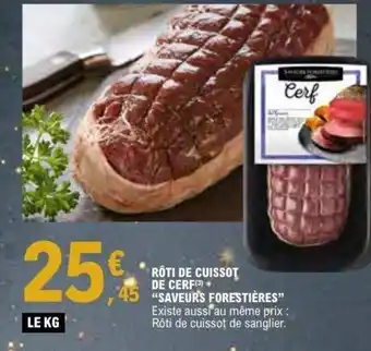 Actuellement en offre chez E.Leclerc : SAVEURS FORESTIÈRES Rôti de cuissot de cerf ✅ Valable du 23-12 au 3-01.