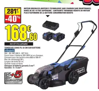 SCHEPPACH Tondeuse sans fil 43 cm sur batterie offres et promotions en ligne chez E.Leclerc