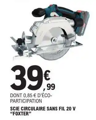 SCIE CIRCULAIRE SANS FIL 20 V “FOXTER” offres et promotions en ligne chez E.Leclerc