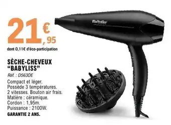 Actuellement en offre chez E.Leclerc : SÈCHE CHEVEUX BaByliss ✅ Valable du 13-01 au 25-01.
