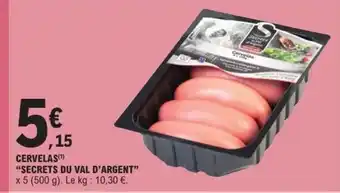 Actuellement en offre chez E.Leclerc : SECRETS DU VAL D'ARGENT Cervelas ✅ Valable du 3-03 au 14-03.