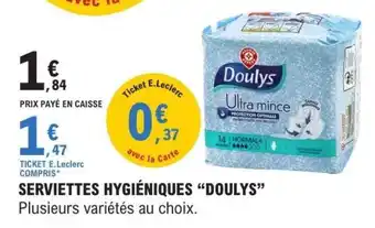 Actuellement en offre chez E.Leclerc : SERVIETTES HYGIÉNIQUES “DOULYS” ✅ Valable du 27-01 au 8-02.