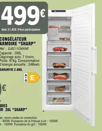 Actuellement en offre chez E.Leclerc : Sharp - congelateur armoire sharp ✅ Valable du 10-03 au 22-03.