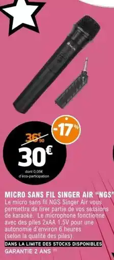 Actuellement en offre chez E.Leclerc : Singer - micro sans fil air ✅ Valable du 7-02 au 6-03.