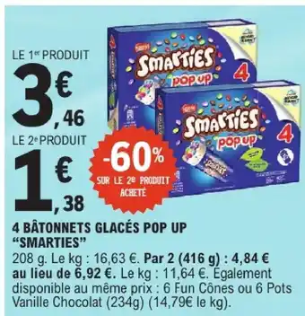 Actuellement en offre chez E.Leclerc : Smarties 4 bâtonnets glacés pop up ✅ Valable du 21-04 au 2-05.