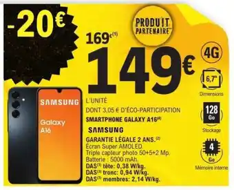 Offre SMARTPHONE GALAXY A16 chez E.Leclerc