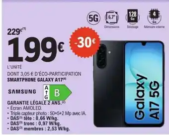 Actuellement en offre chez E.Leclerc : Smartphone Galaxy A17 ✅ Valable du 10-02 au 21-02.