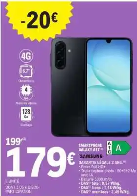 Actuellement en offre chez E.Leclerc : Smartphone Galaxy A17 ✅ Valable du 24-02 au 7-03.