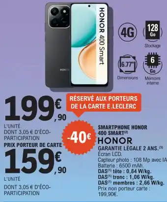 Actuellement en offre chez E.Leclerc : Smartphone honor 400 smart ✅ Valable du 3-02 au 14-02.