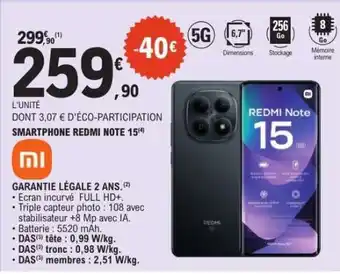 Offre SMARTPHONE REDMI NOTE 15 chez E.Leclerc