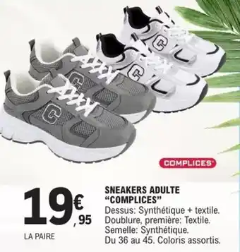 En plus de l'offre Sneakers adulte, E.Leclerc propose une large gamme de produits. Consultez le Catalogue E.Leclerc hebdomadaire pour découvrir les meilleures offres et promotions. En plus de Sneakers adulte, il y a aussi : Sneakers adulte complices, Sneakers adulte airness & Airness - sneakers adulte airness.