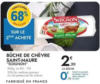Actuellement en offre chez E.Leclerc : Soignon - bûche de chèvre saint-maure ✅ Valable du 14-04 au 25-04.