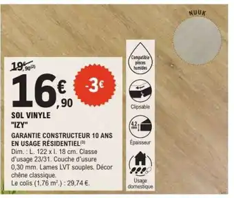 Actuellement en offre chez E.Leclerc : SOL VINYLE IZY ✅ Valable du 30-12 au 17-01.
