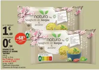Actuellement en offre chez E.Leclerc : Spaghetti de konjac et avoine 'Natura' ✅ Valable du 10-02 au 21-02.