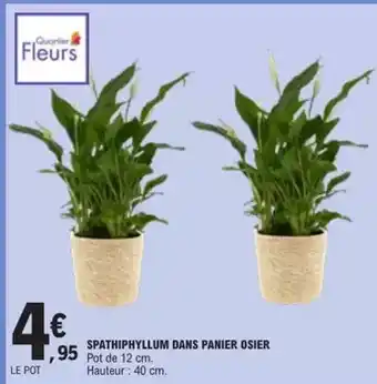 Actuellement en offre chez E.Leclerc : Spathiphyllum dans panier osier ✅ Valable du 27-01 au 7-02.