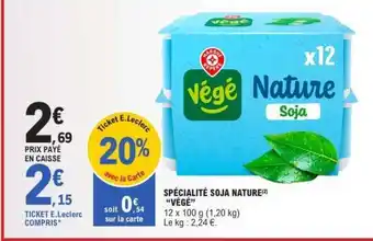 Actuellement en offre chez E.Leclerc : SPÉCIALITÉ SOJA NATURE VÉGÉE ✅ Valable du 17-03 au 28-03.
