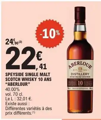 SPEYSIDE SINGLE MALT SCOTCH WHISKY 10 ANS “ABERLOUR” offres et promotions en ligne chez E.Leclerc